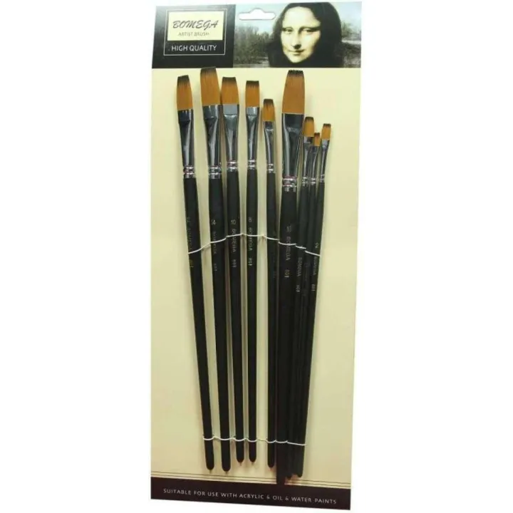Bomega Flat Artist Paint Brush Set Of 9 Black B 801
