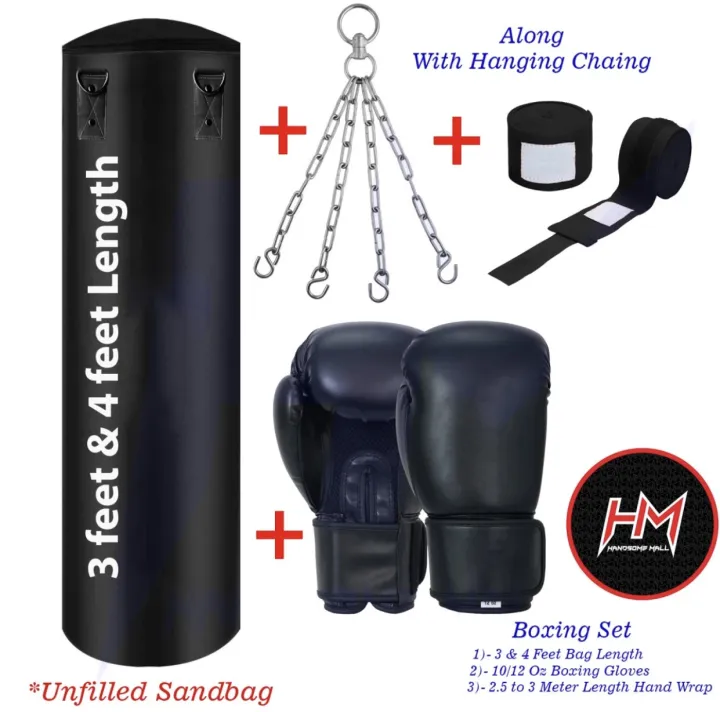 Boxing bag with chain boxing gloves and bandages wrapes boxing kit full set