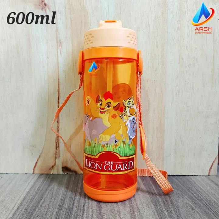 Bright 600ml Boys Creative The Lion Guard Cartoon Character Water Bottle with Straw BPA Free Plastic Sipper Bottle for School Kids (Orange)