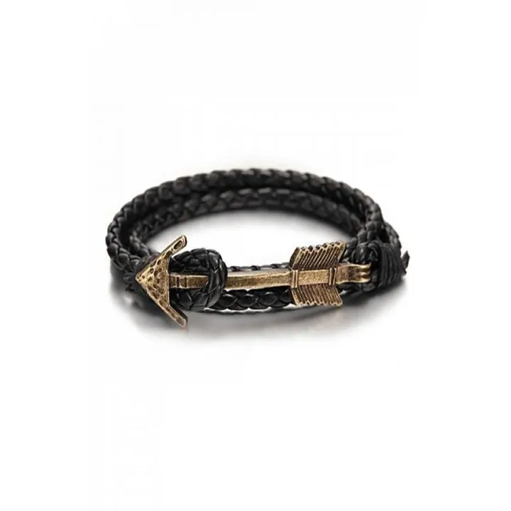 Bronze Black PU Leather & Alloy Anchor Bracelet