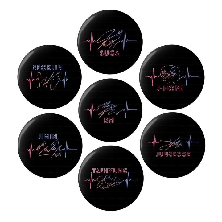 BTS%20MEMBER%20SIGNATURE%20NAME%20Pin%20Badges%2058mm%20pack%20of%207%20-%20Image%201