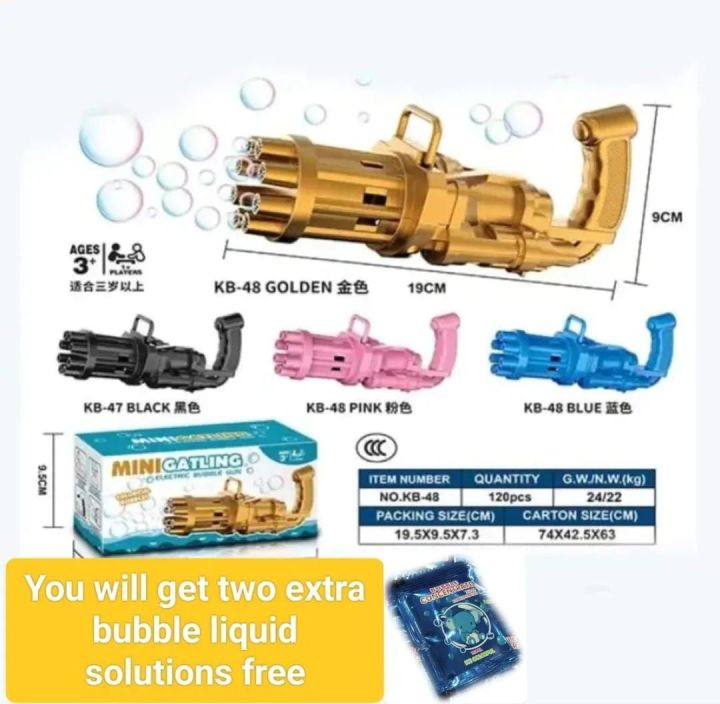 Bubble Gun Machine With Two Extra Bubble Liquid Solutions Free - Massive Bubble Toy Gun With Bubble liquid for Kids - Automatic Electric Bubble Maker Machine - 8-hole Bubble Gun