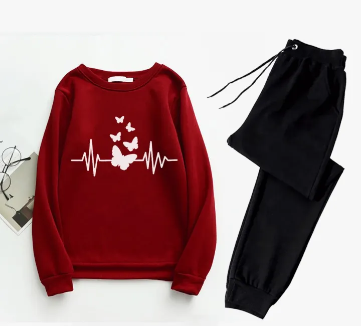 Butterfly and Heart Printed Summer Tracksuit T-Shirt and Trouser For Women and Girls - Fashionable and Cool Women's Tracksuit