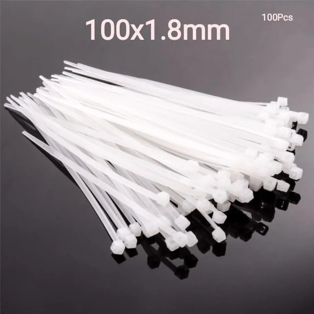 Cable Zip Tie 100 Pieces Bag Nylon Plastic Organiser Fasten Cable Wire Zipper Ties White Tool -100x1.8mm| Ecartmax