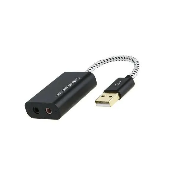 CableCreation USB Audio Adapter External Sound Card with 3.5mm Headphone and Microphone Jack Compatible with Windows, Mac, macOS, Linux, PS4, PS5, Plug and Play, Aluminum Black