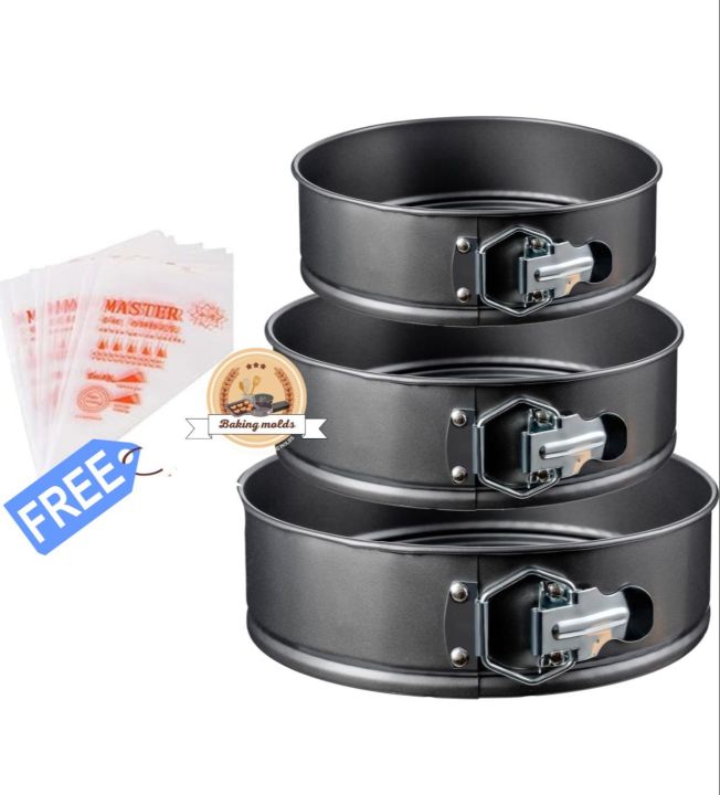 (Cake Pan set nonstick 6,7,8 inches with 3 piping pages free set) Non stick Cake Pan - Springform Non-stick Bakeware Cheesecake Pan with Removable Bottom - Non Stick Lockable, Leakproof And Round Shape For Baker & Baking Cake Pan Tool cake Pan cake molds