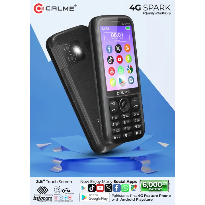 Calme 4G Spark - 2GB RAM 16GB ROM - 3.5 Inches HD Display - Touch Screen - Dual SIM - 6000mAh Battery