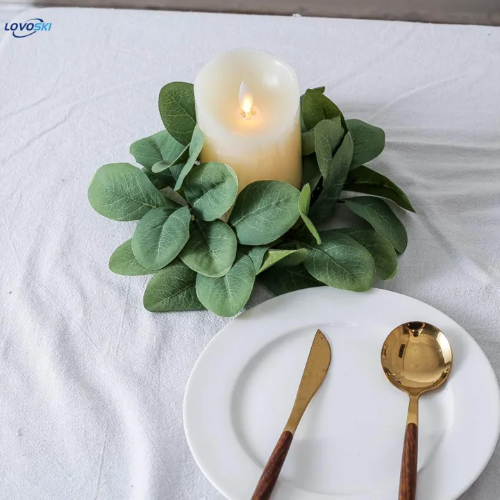 Candle Rings Eucalyptus Leaves Wreath for Celebrations Room
