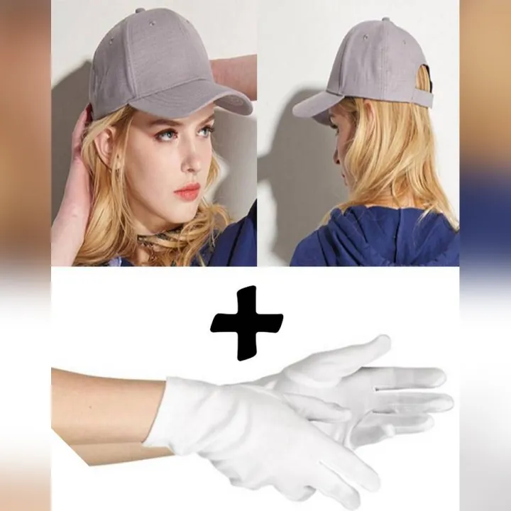 Cap For Girls And Pair Of Gloves Sun Block Beautiful Grey Color