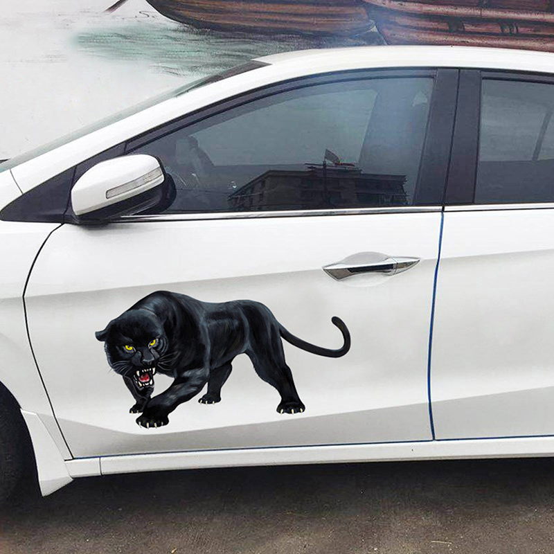 Cartoon 3D Car Stickers Animal Black Panther Roaring Bumper Motorcycle Helmet Decal Vinyl Cover Scratches Waterproof PVC YULING