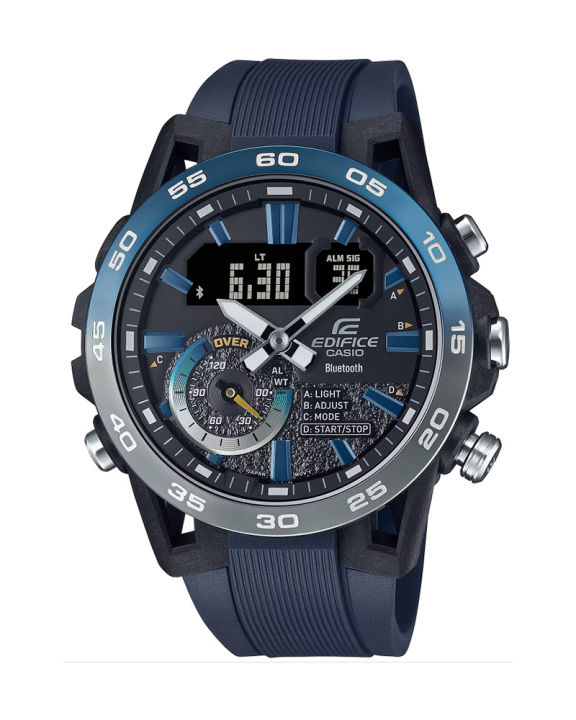 Casio Edifice Sospensione Night-Time Drive Series Mens Black Carbon Fiber Case Round Analog+Digital Solar Power Bluetooth World Time Stopwatch-ECB-40NP-1ADF