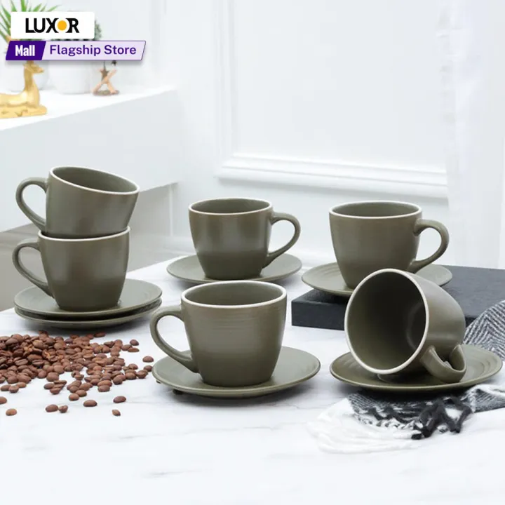 Ceramic Tea Cup Set with Saucer- 12 Pcs Tea Cups Set of 6 Classical Glazed Design