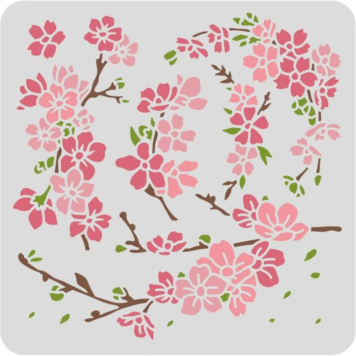 Cherry Blossoms Drawing Stencils 12x12inch Cherry Tree Branch Painting Templates for Scrapbooking Fabric Floor Furniture Wall