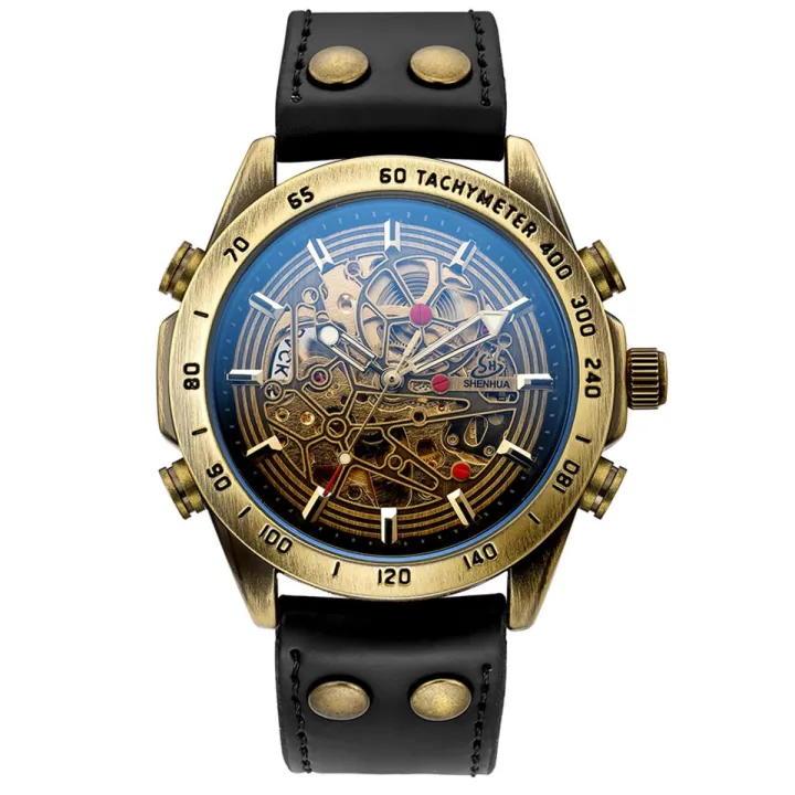 Classic Vintage Men Automatic Mechanical Watch Skeleton Transparent Self Winding Men Watches Leather Man Clock