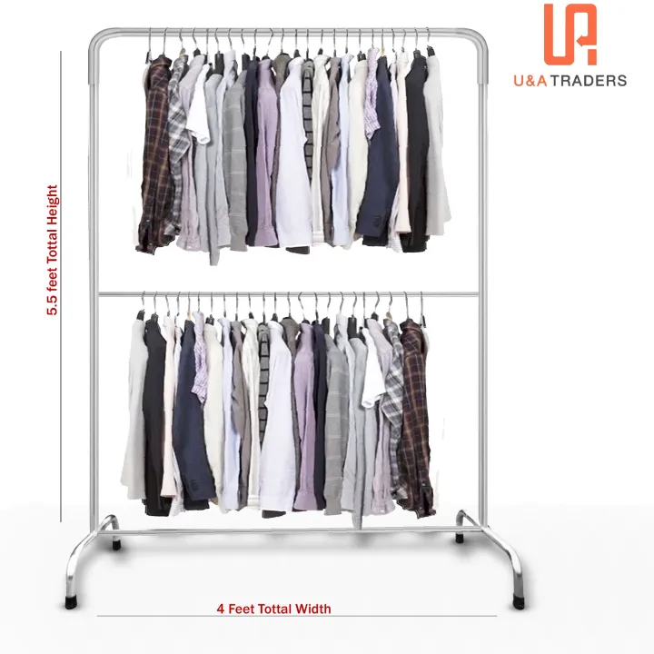 Cloth Hanging Stand Boutique Hanger Hanging Stand Double Pole For home/house/Garments shop/Cloth Rack with heavy gauge pipe good quality With best price in pakistan