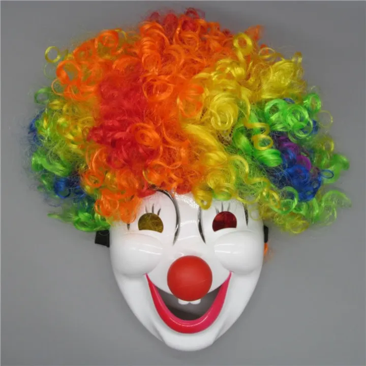Clown Wig & Mask Set | Rainbow Afro Wig + White Clown Face Mask with Red Nose | Halloween, Circus & Funny Party Costume for Kids & Adults