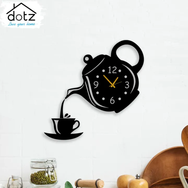 coffee cup and kettle design wall clock, clock for kitchen, stylish clock for kitchen, kitchen clock, wooden clock for kitchen