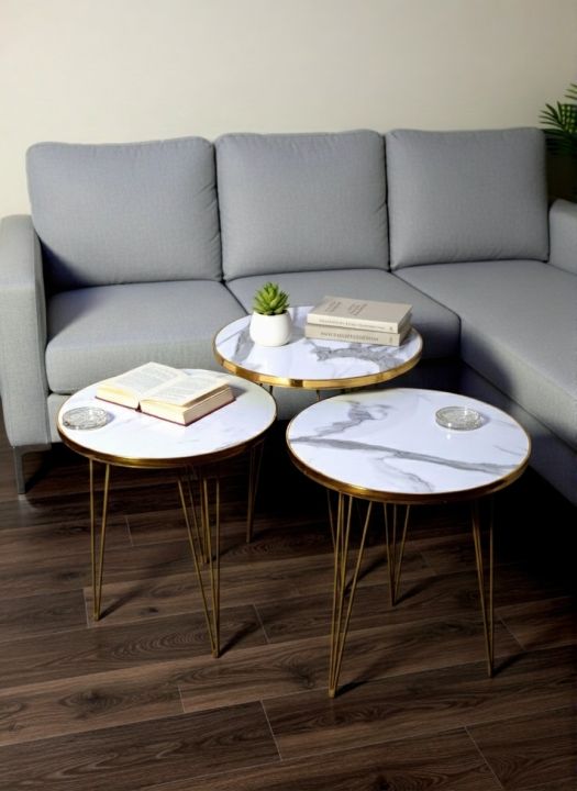 Coffee Table Set of 3 | Round Coffee Tables for Living Room | Glossy UV Sheet Wooden Coffee Table | Modern Coffee Table Set for Home