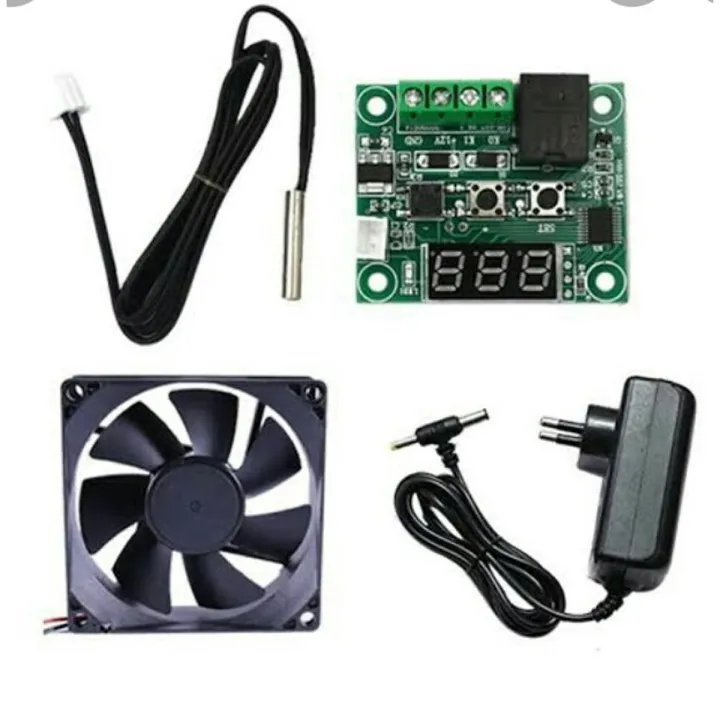 Combo W1209 12v DC temperature controller board with adapter 1.5 amp and DC fan diy kit incubator brooder