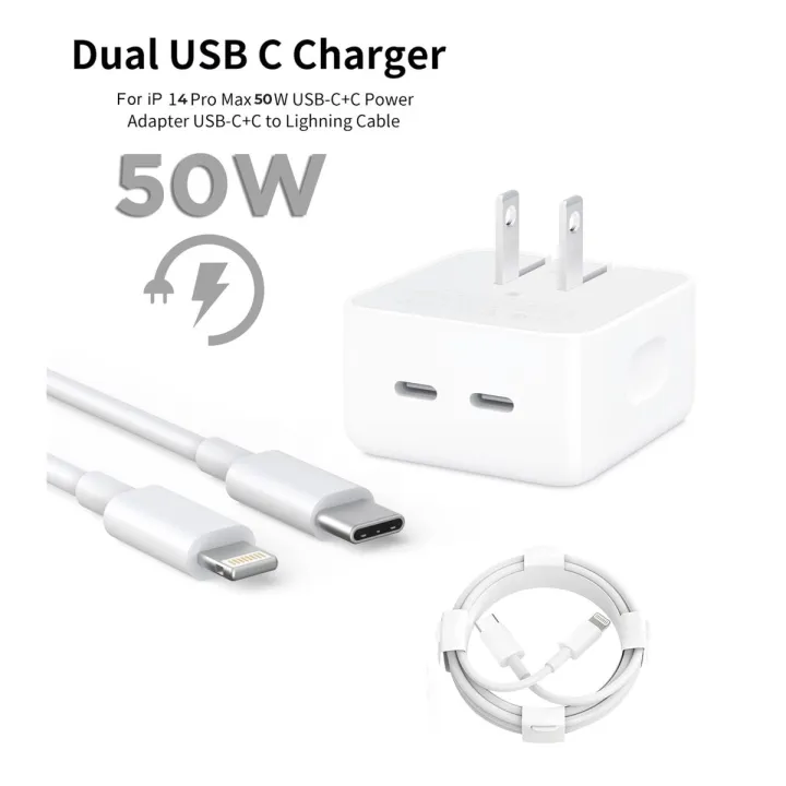 Compatible IPHONE 14 Pro 2 Pin (US PIN) 50W USB-C+C POWER Adapter With USB-C TO LIGHTINING CABLE