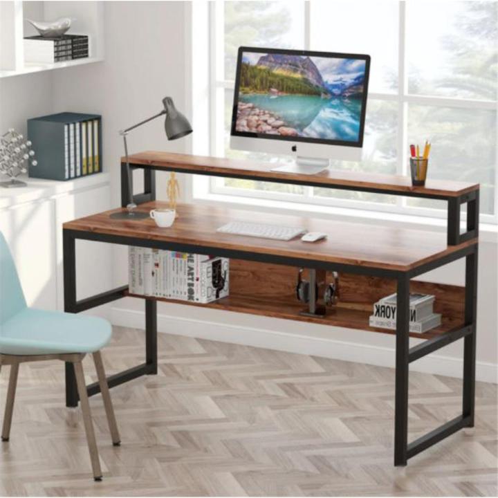 Computer Desk with Shelves and Monitor Stand - Space Saving Design Desk- Table