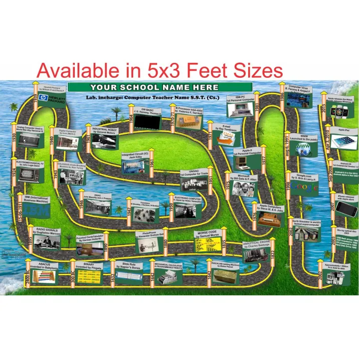 Computer - History Abacus Lab- Board and Chart Graphics Flex sheet Panaflex Penaflex pana pena flex for Learning Education and Decoration of Class Room of School and College with customise Your School and Teacher Name