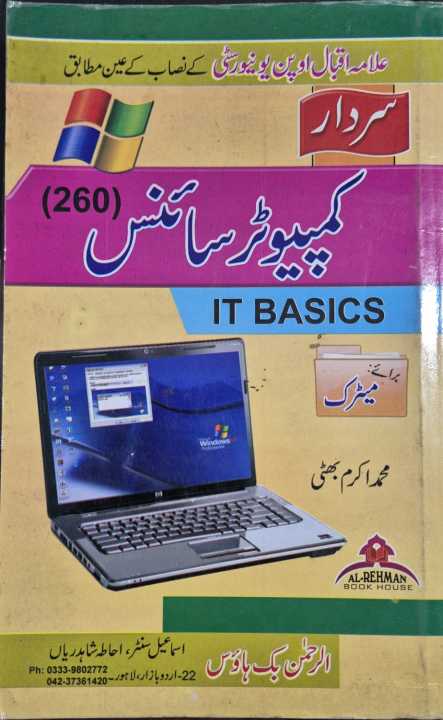 Computer Science IT Basics Book Matric Code 260, Matric books, AIOU Books, Allama Iqbal Open University Book code 260 Computer Science IT Basics