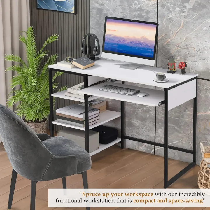 Computer Table with 3 Tier Bottom Storage & Keyboard Tray -Modern Tabletop Office Desk