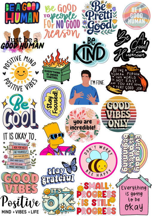 Positive Stickers Motivational Quotes Mental Health Decals Aesthetic Affirmations Be Kind Stickers Good Vibes Only Pack Of 25 Stickers Planner Stickers Laptop Skins Water Bottle Decals Office Decor Journaling Supplies Gift for Friends 2inchx2inch each