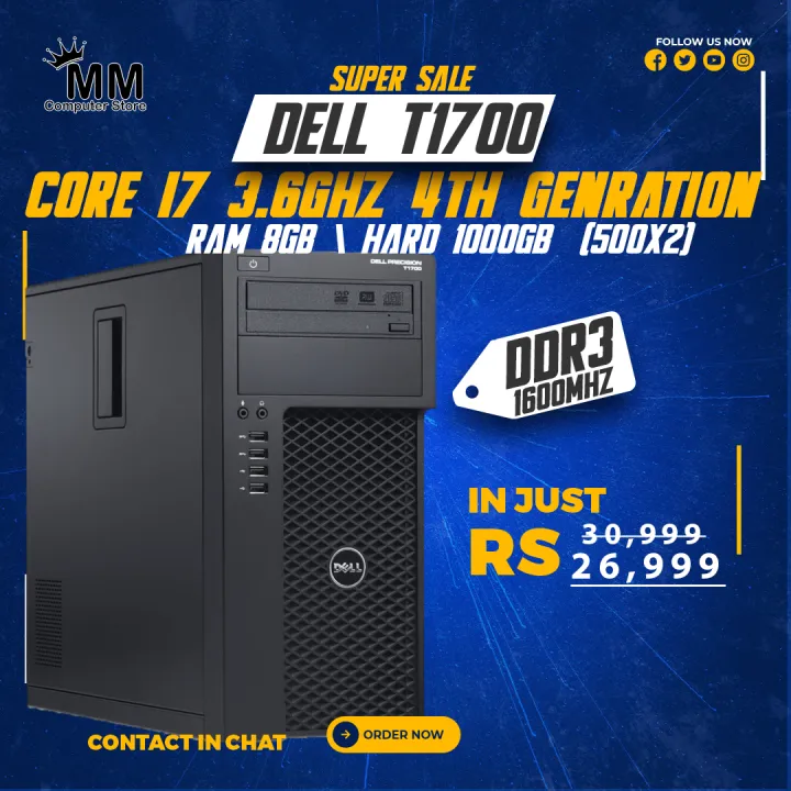 Core i7 4th generation Tower + 8GB RAM + 1000GB (500+500) Storage ,DELL T1700 Tower Windows 10 Ready Turbo Boost up to 4.00Ghz With Hyper Threading support.