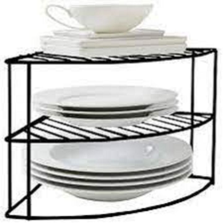 Corner Shelf Plate Rack - 3 Tier Kitchen Cabinet Organiser - black