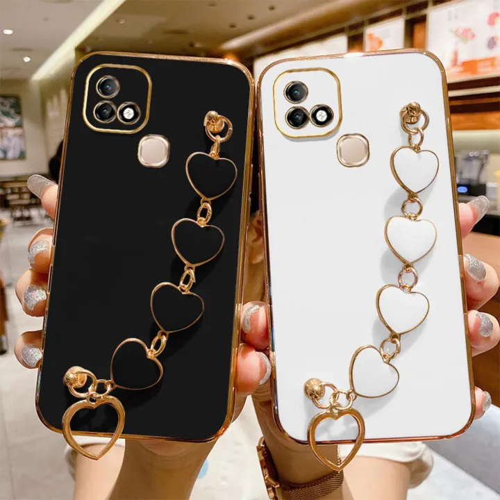 COROGI%20for%20Infinix%20Smart%205%20Pro%20/%20Infinix%20Hot%2010i%20Back%20Cover%20with%20Love%20Heart%20Bracelet%20Luxury%206D%20Plating%20Frame%20Shiny%20Chain%20Cases%20Soft%20Silicone%20Square%20Protective%20Mobile%20Phone%20Case%20for%20Girls%20Boy%20-%20Image%201