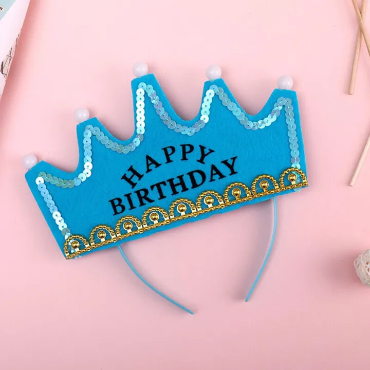 Crown For Happy Birthday HBD LED-Cap Headband Party LED Light Hat, Led Happy Birthday Crown, Blue