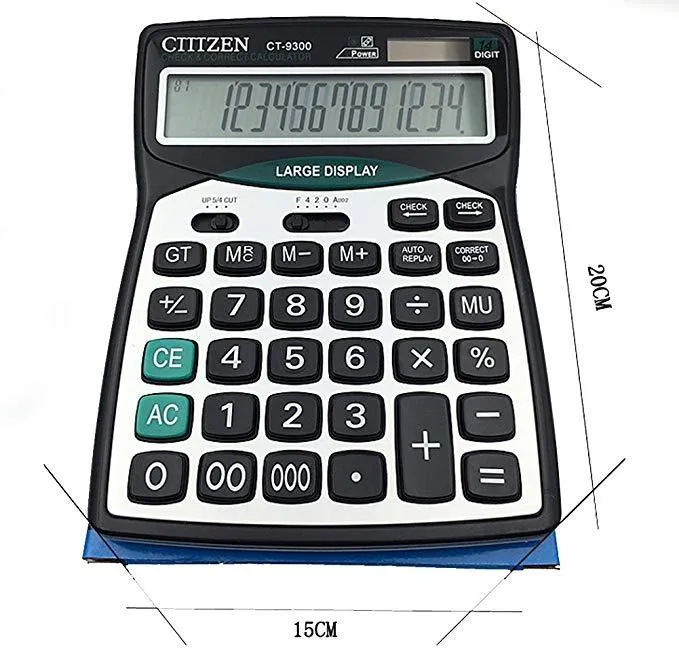CT-9300 14 Digit Desktop Solar Dual Power Calculator