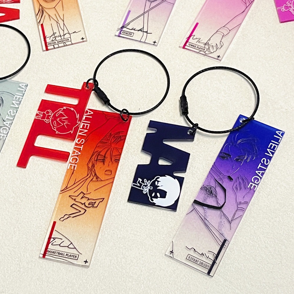 Cute Acrylic Alien Stage Keychain Cartoon Anime Keyring Cosplay Keychain Xmas