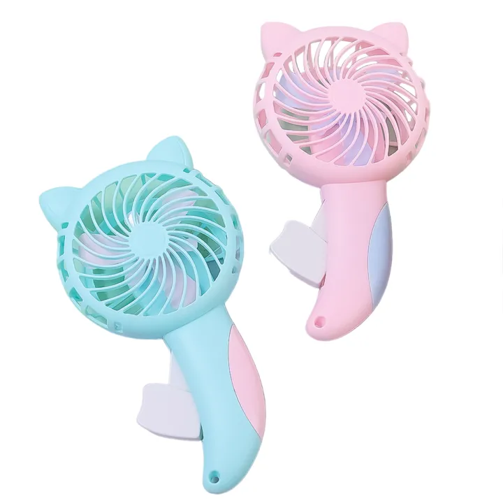 Cute Cartoon Cat Children Mini Hand Pressure Fan Summer Outdoor Small Fan For Kids No Battery Needed Children Toys Girls Gifts 1Pcs