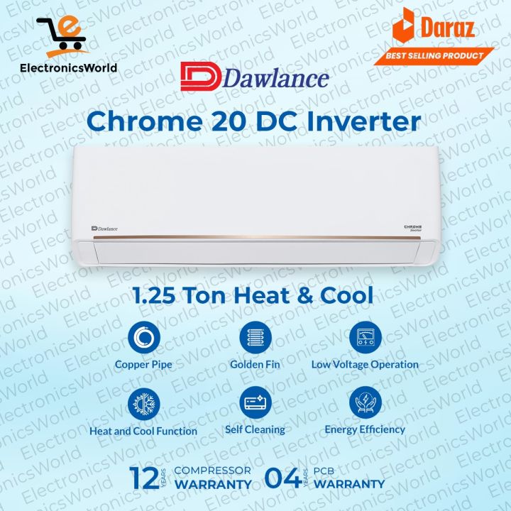 Dawlance%20Ac%201.25%20Ton%20DC%20Inverter%20Split%20%7C%20Model%20Chrome%2020%20Inverter%20%7C%20Heat%20&%20Cool%20%7C%20Fast%20Cooling%20%7C%20Self%20Cleaning%20%7C%204D%20Air%20Flow%20%7C%20Gold%20Fin%20%7C%204%20Years%20P.C.B%20Card%20Warranty%20%7C%2012%20Years%20Compressor%20Warranty%20-%20Image%201