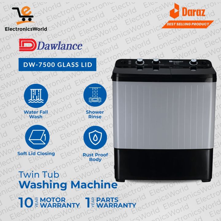 Dawlance Washing Machine | DW 7500 Glass Lid Twin Tub Washing Machine | 10 KG Washing Capacity | Waterfall Wash with 10 Years Motor Warranty