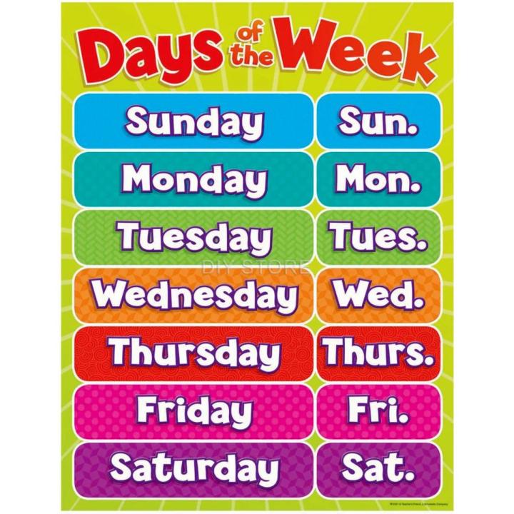 Days Of The Week Poster Panaflex Home School Decoration