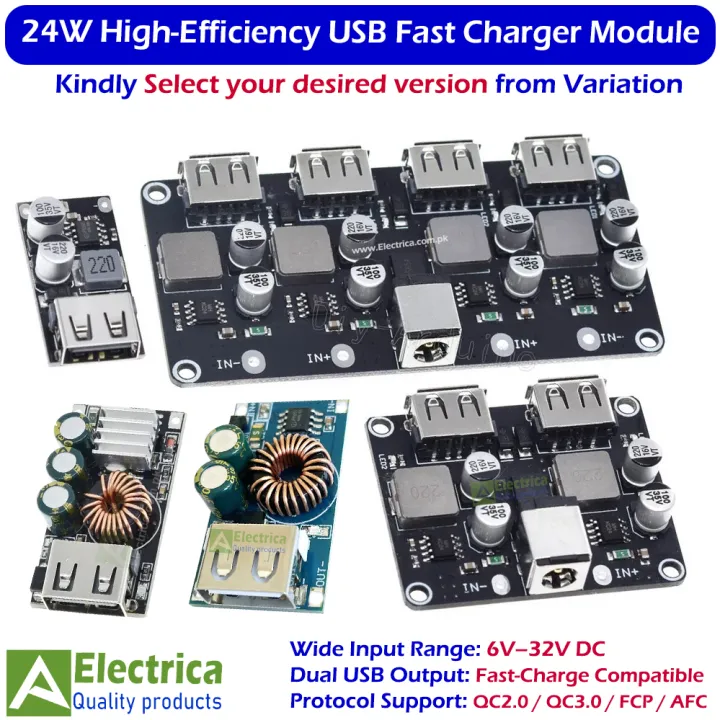 DC 6V–32V to 5V 24W 1/2/4-Channel USB Fast Charger Module QC2.0 / QC3.0, DC-DC Step-Down Converter (XFW-KC24) by Electrica