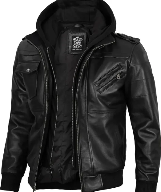 Decrum Hooded Leather Jacket Men - Bomber Leather Jackets For Men (75 % payment advance)