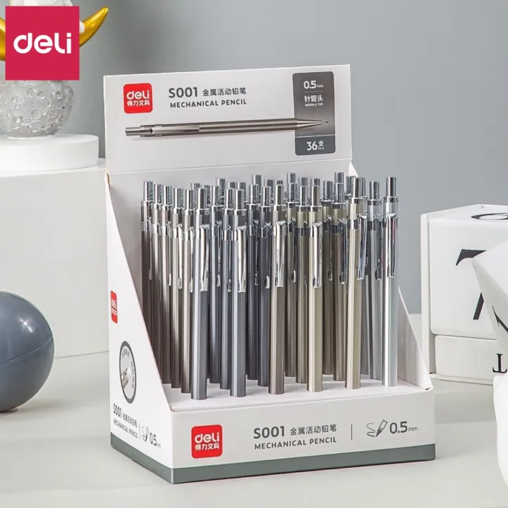 Deli S001/S002 Movable Pencil 0.5/0.7mm Student Writing Metal Pen Body Mechanical Pencil