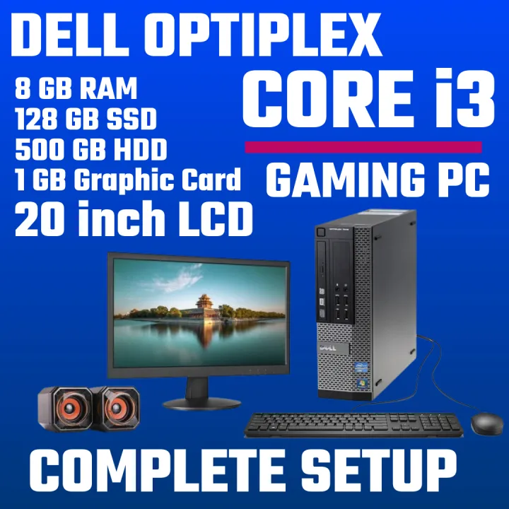 DELL OPTIPLEX Core i3 3rd Gen 8GB RAM 128GB SSD 500GB HDD 1GB Graphic Card 20 inch LCD Keyboard Mouse Speakers