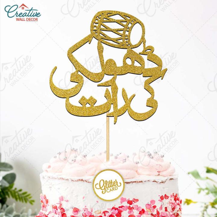 Dholki ki Raat Cake Topper for Cake Decoration, Wedding Anniversary & Engagement Party Celebration Toppers in Gold