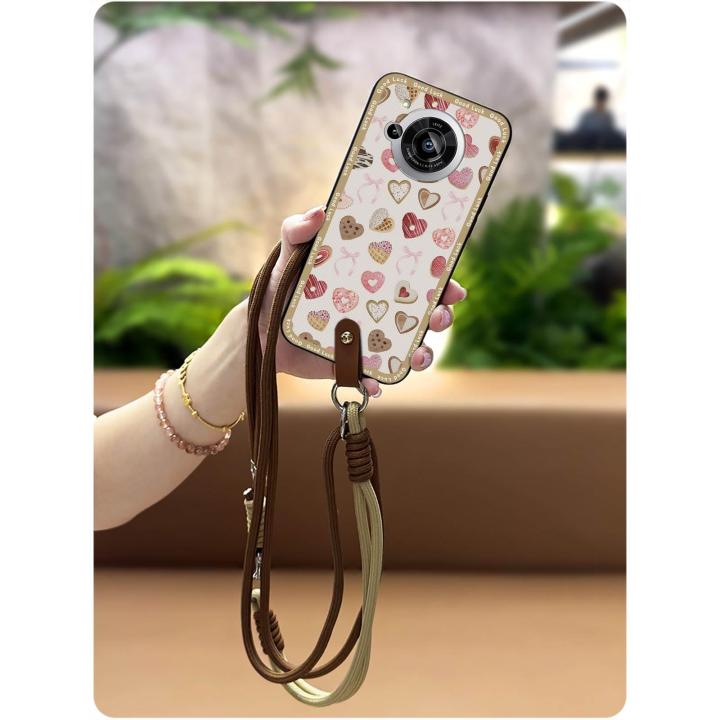 Diagonal Fashion Design Phone Case For Sharp Aquos R7/SH-52C Back Cover Full wrap Silicone Necklace Graffiti Lanyard TPU