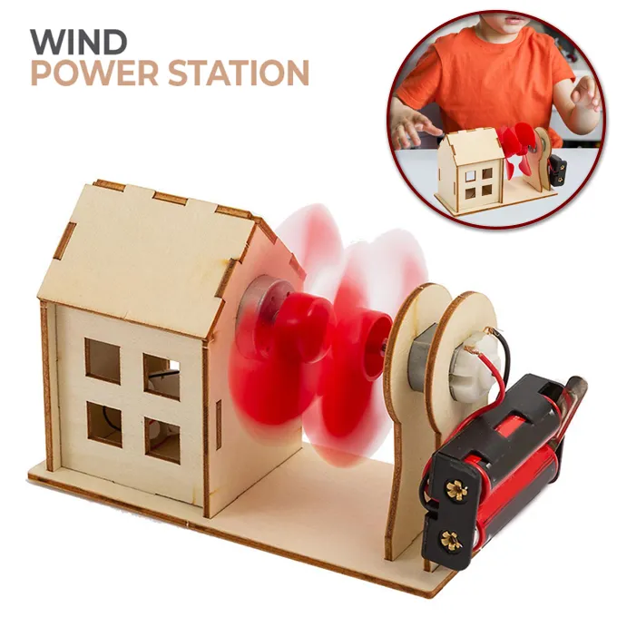 DIY Wooden Wind Power Station Turbine House STEM Assemble Series Kit - Size Approx. 5 inch - Multicolor