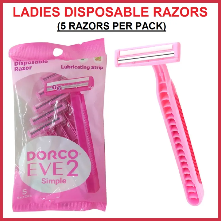 DORCO EVE 2 Twin Blade Disposable Body Razor for Women (5 Razors Pack) | Ladies Women's Girls Shaver Trimmer Razor | Lady Razor - (2 Blades) Pink | Ladies Razer | Shave Body Razor for Women Female | Makeup Tweezers | Health Beauty