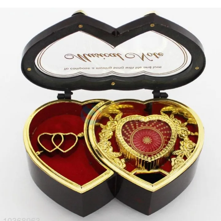 Double Heart shape Jewellery storage box with dancing Cupid