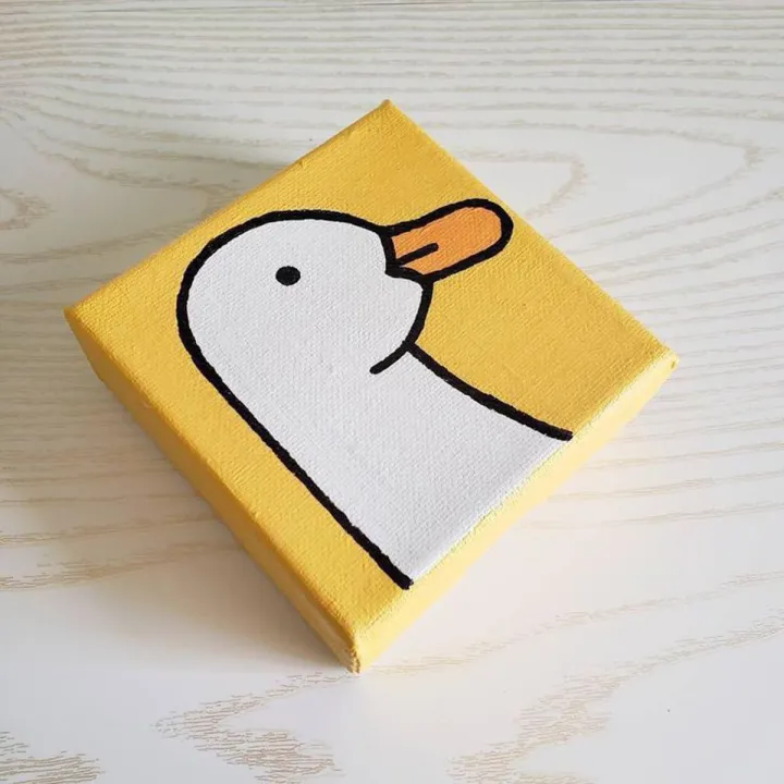 Dreamy designs yellow duck small cute duck painting on canvas 4x4 size painting acrylic painting art and crafts hand painted hand painting canvas wall decor decoration items gift items