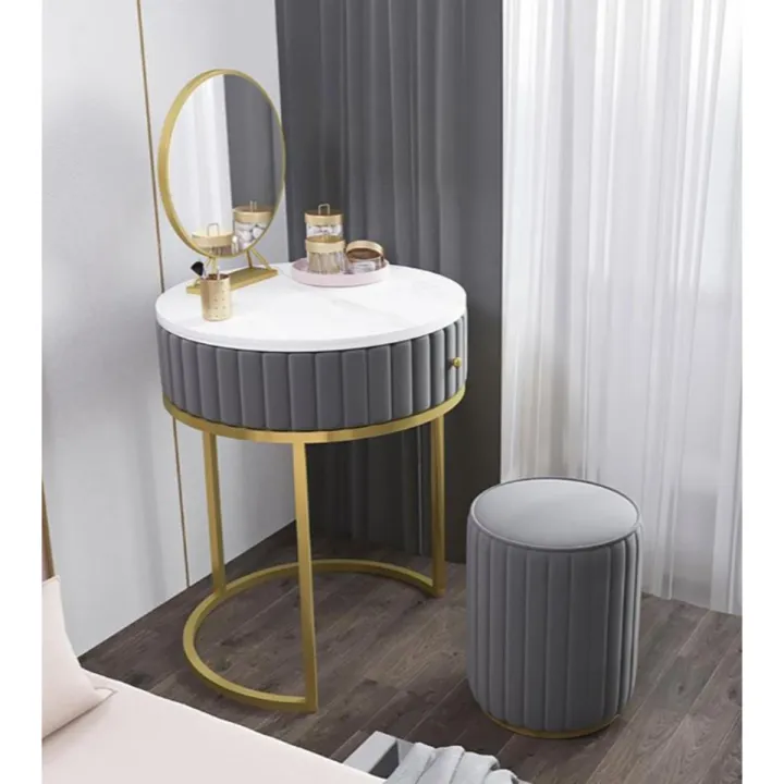 Dressing%20Table%20/%20Tufted%20Round%20Dressing%20Table%20/%20Dressing%20Table%20With%20Mirror%20And%20Tufted%20Stool%20/%20Dresser%20/%20Dressing%20Table%20-%20Image%201